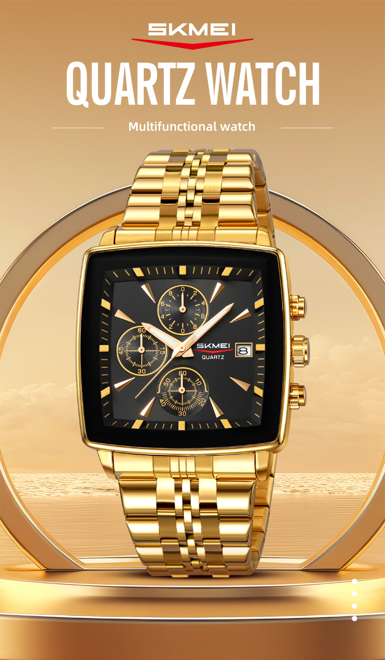 SKMEI 2434 Men's Luxury Stainless Steel Quartz Chronograph Watch Silver Band Square Analog Dial Date Display Water Resistant